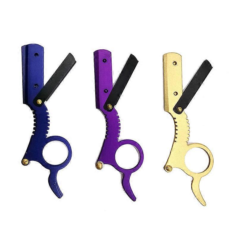 Dww-3PCS Stainless Steel Men's Straight Edge Thumb Shaped Manual Razor for Facial Hair Removal, Shaving, Vintage Classic Mustache Shaving Tool