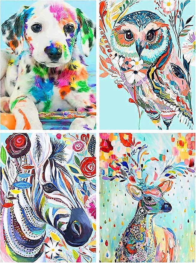 Dww-Diamond Painting Kits, 4 Pack Diamond Painting for Kids and Adults, Complete Diamond Embroidery Kit Animals, 5D Diamond Painting Rhinestone Dog Ho