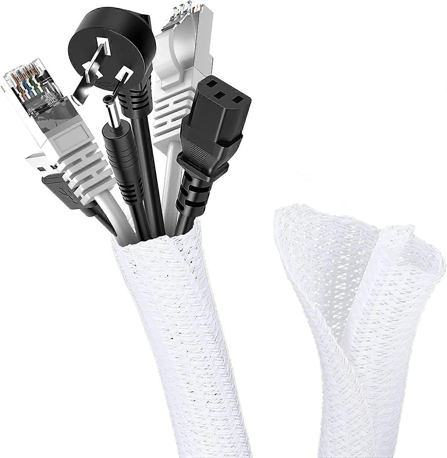 Dww-3M- White Cable Management Sleeve, 13-20mm Adjustable Braided Cable Sleeve, Expandable Computer Cable Management Sleeve, Cable Cover Protection fo