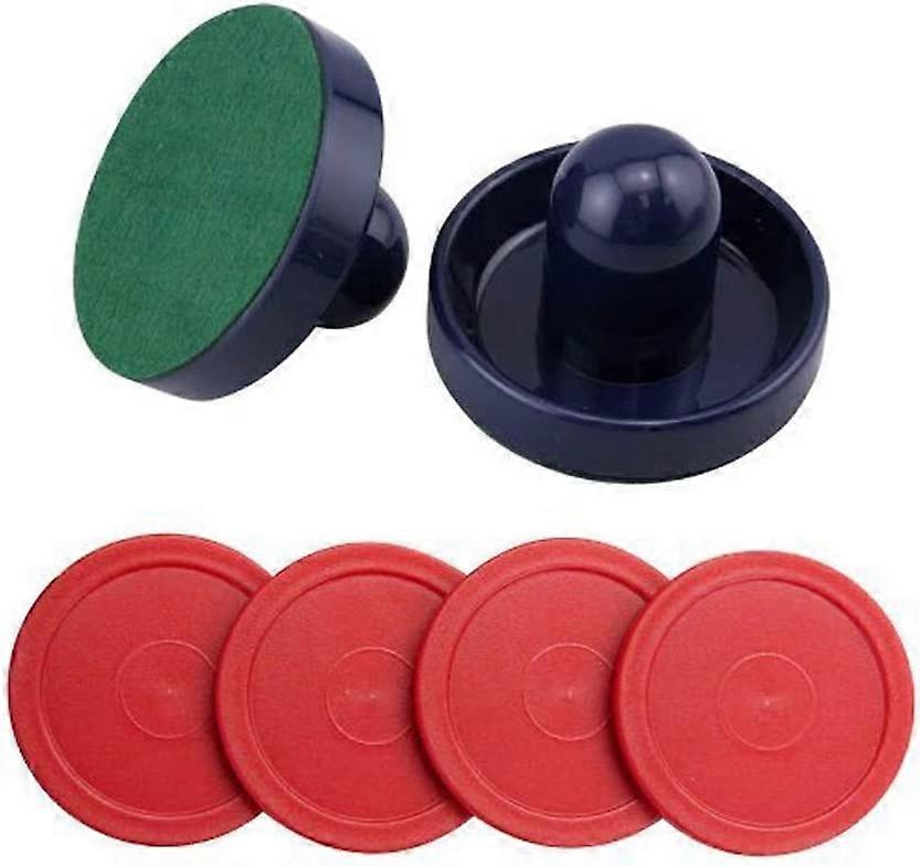 Dww-Air Hockey Pushers & Pucks Set, Large Size, (2 Navy Pushers + 2 Lints + 4 Red Pucks)