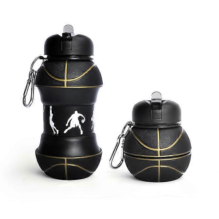 Dww Sports Water Bottle - 550 ml - Black and Gold Collapsible Silicone for Children - Leakproof - Durable - With Straw - Keychain