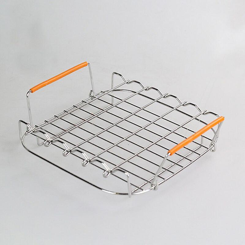 Air Fryer Rack Square Stainless Bbq Grill Rack With Skewer Needle Cooking Steaming Baking Rack Airfryer Accessories