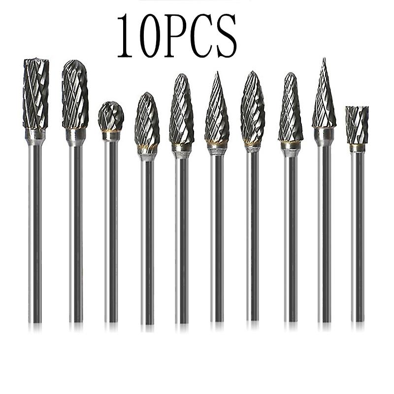 Carbide Tungsten Steel Double Grain Rotary File Milling Cutter Head Woodworking Grinding Head Carving Knife 10pcs