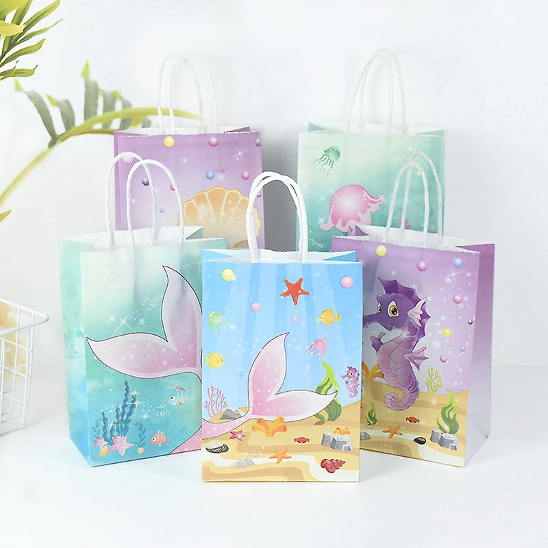 5pcs Mermaid Tail Paper Bag Underwater Animal Theme Party Candy Gift Packaging Bags Wedding Birthday Party Baby Shower Supplies