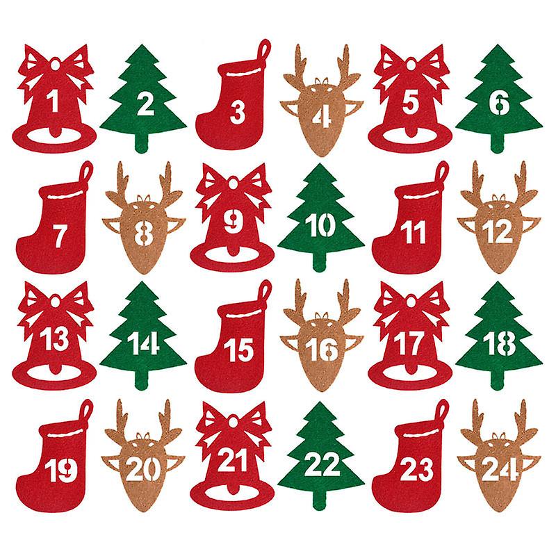 24pcs/set Christmas Countdown Number Stickers 1-24 Felt Stickers Christmas Gift Bag Labels Advent Calendar Sticker Diy Supplies