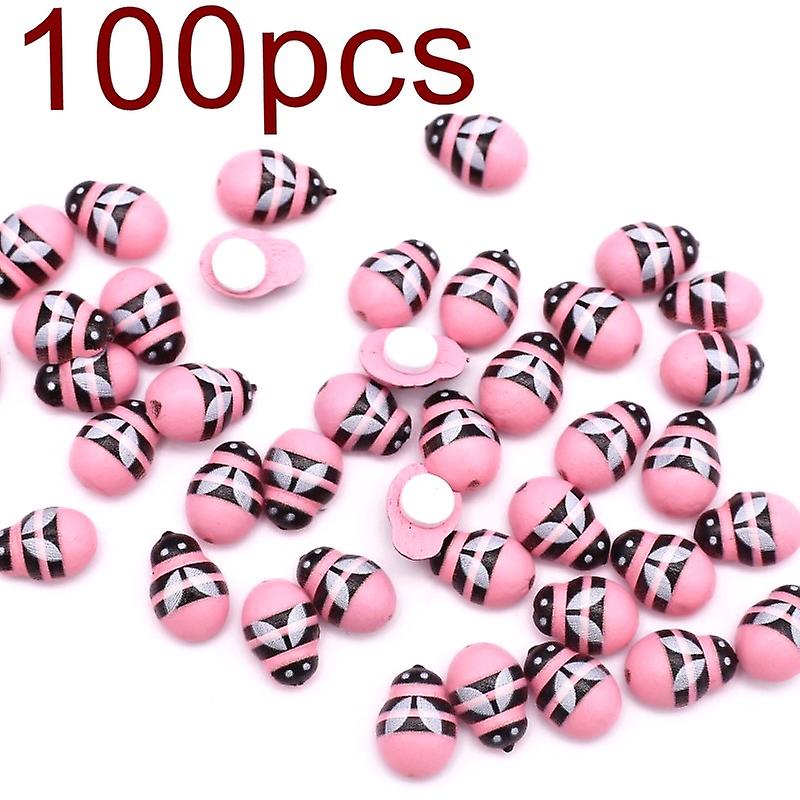 50/100pcs Pink Wood Bee Self-adhesive Sticker 9*12mm Handicrafts Refrigerator Wall Windows Decoration Diy Wedding Party Supplies