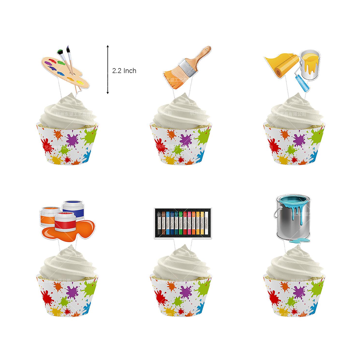 Art Painting Theme Party Arrangement Birthday Flag Cake Insert Spiral Pendant Latex Balloon Party Decoration
