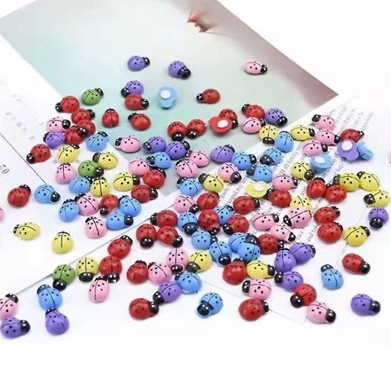 100pcs Pink Ladybug Self-adhesive Sticker 9*12mm Wood Handicrafts Refrigerator Wall Window Decoration Diy Wedding Party Supplies