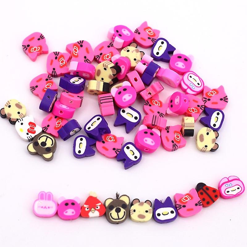 30pcs Mix Colorful Cat 10mm Polymer Soft Pottery Middle Hole Bead Bracelet Necklace Decoration Diy Clothing Jewelry Accessories