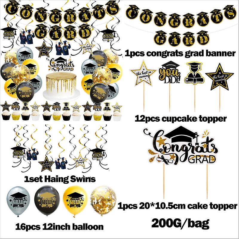 New Set Of Black Gold Graduation Season Theme Party Pull Flag Balloon Classroom Photo Wall Party Decoration