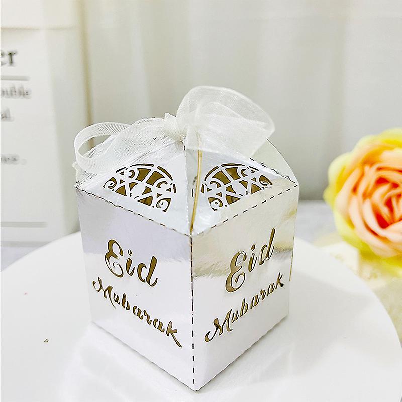 12pcs Eid Mubarak Gold Hollow Out Gift Box Ramadan Kareem Decoration Muslim Islamic Festival Party Cookies Candy Packaging Box