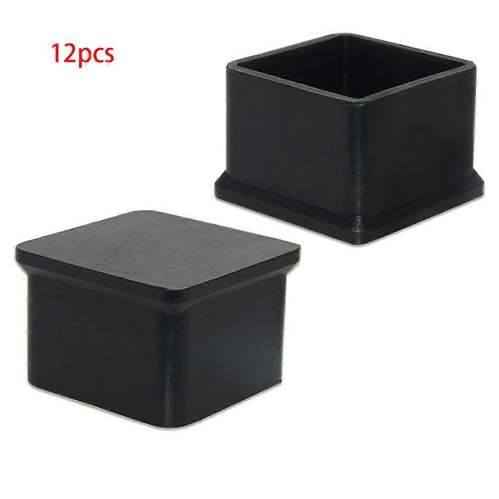 Dww-Pack of 12 40 x 40 mm (4.0 x 4.0 cm) Black Chair, Table, Floor, and Chair Leg Caps, Square Shape, Durable Silicone