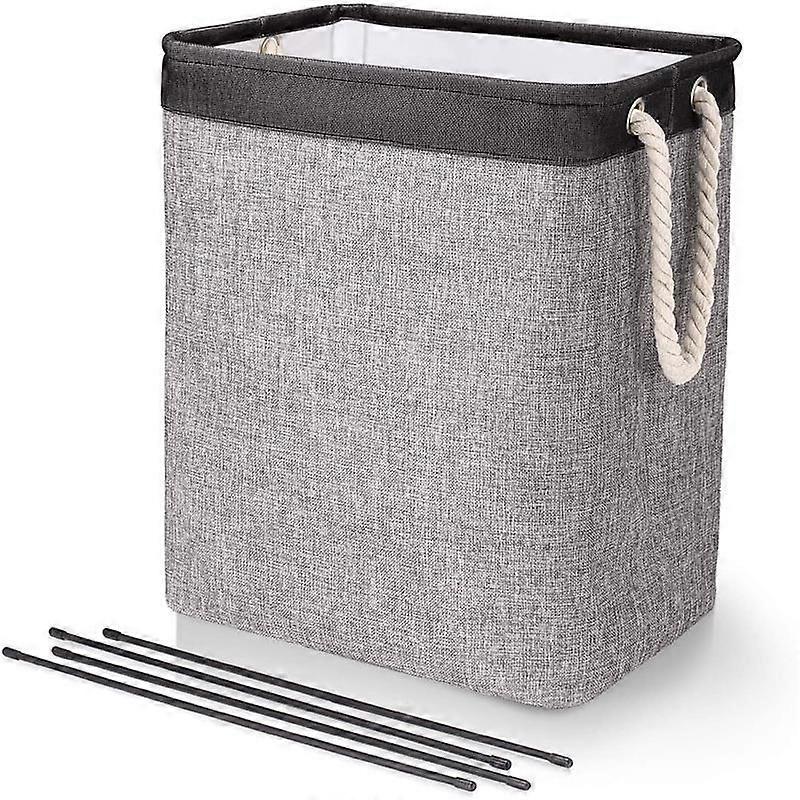 Dww-78L 60 x 42 x 31 cm Black+Grey Large Laundry Basket, Foldable Laundry Bag with Rope Handles, Storage Bin Suitable for Bedroom, Laundry Room, Bathr