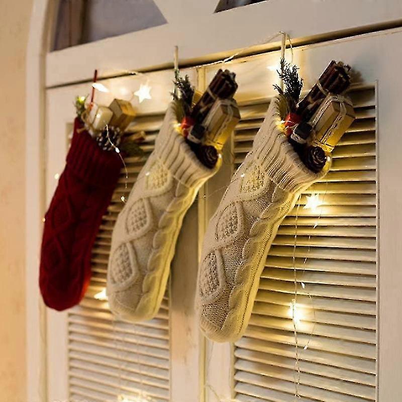 GYFDYM 4 Pack Christmas Stockings, 14 Inches Cable Knitted Stocking Gifts & Decoration For Family Holiday Xmas Party Decor, Ivory White And Burgundy