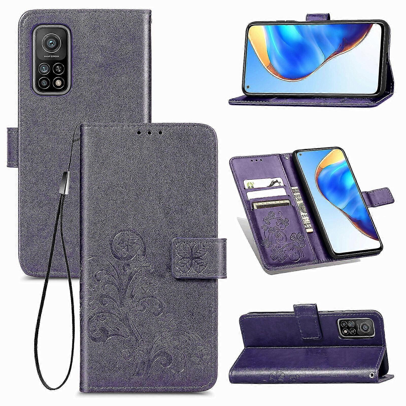 Compatible With Xiaomi Mi 10t/10t Pro Cover Wallet Clover Embossed Protective Leather Phone Case - Violet