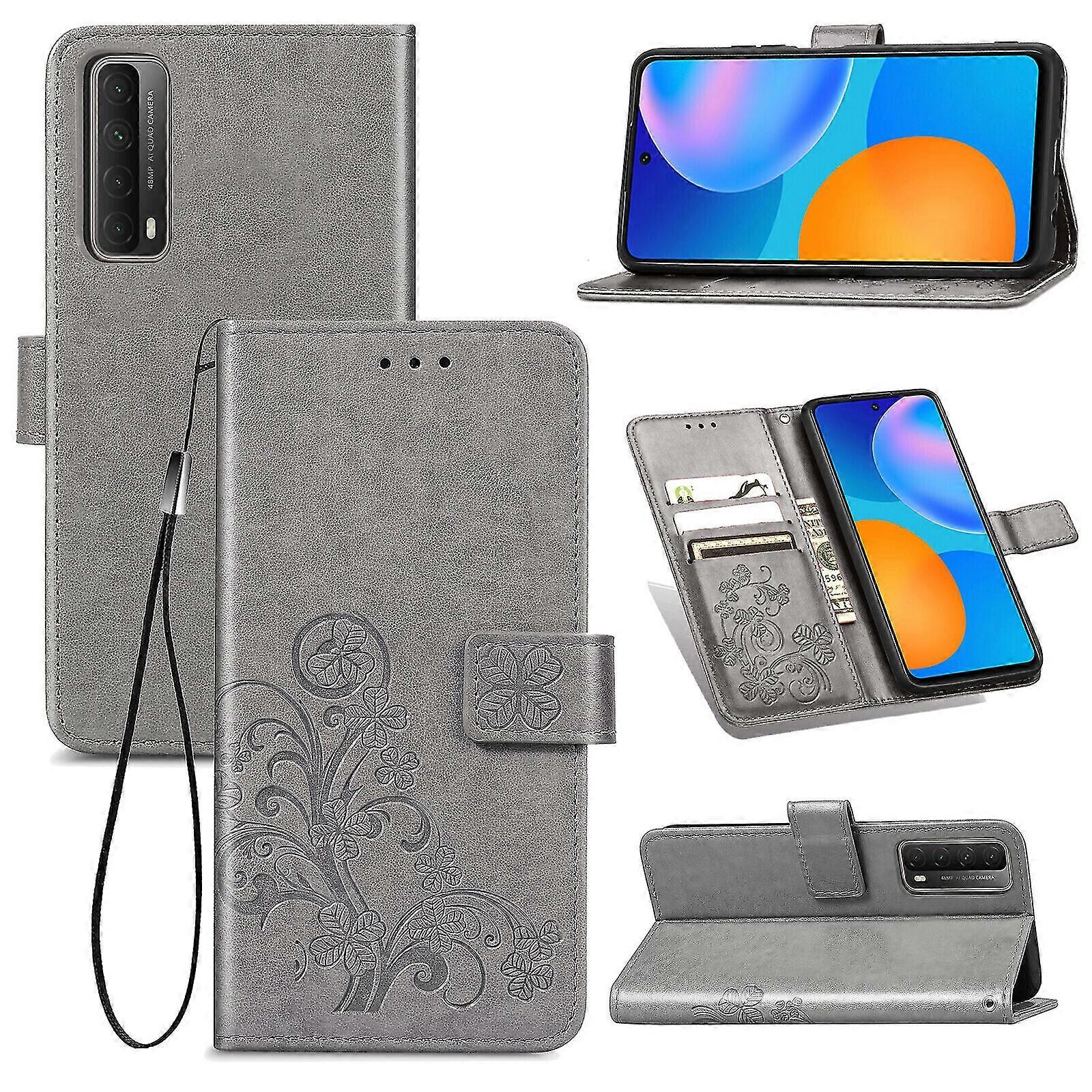 Compatible With Huawei P Smart 2021 Cover Wallet Clover Embossed Protective Leather Phone Case - Grey