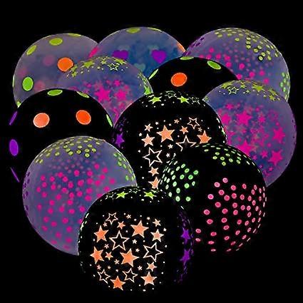 Dww-Lot of 100 Glow-in-the-Dark Fluorescent Balloons for Themed Party Decorations, Polka Dot Pattern (Random Design), Mouthwash