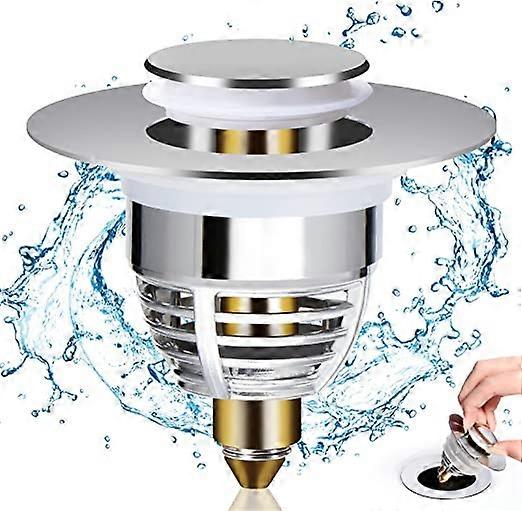 Dww-Universal Basin Drain Plug, Pop-Up Basin Plug with 2 Seals for Bathtub, Kitchen, Sink (Drain Hole 32-42mm)