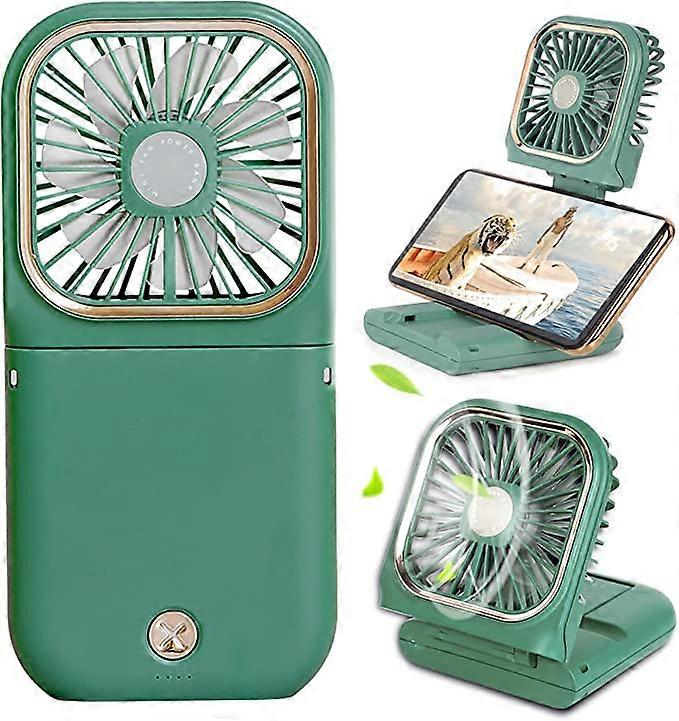 Dww-Foldable Portable Fan (Pink), Mini USB Power Bank Fan, Small 3-Speed Personal Fan, 3000mAh Battery-Powered Foldable Desk Fan, Neck Fan with Attach