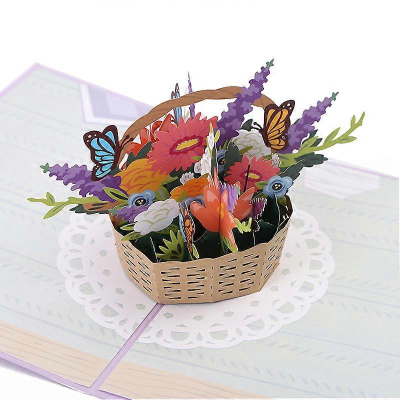 Dww-Butterfly Flower Basket Pop-Up Card, Handmade Flower Greeting Card, 3D Mother's Day Birthday Card, Anniversary, I Miss You, Thank You Card, Mother