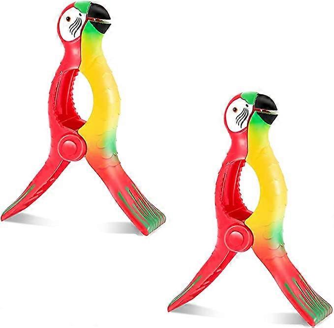 Dww Beach Towel Clips (2 Parrots), 2 Large Clothespins, Clothesline Hangers, Parrot Beach Towel Clips for Sunbed, Lounger, Pool Chair, Laundry