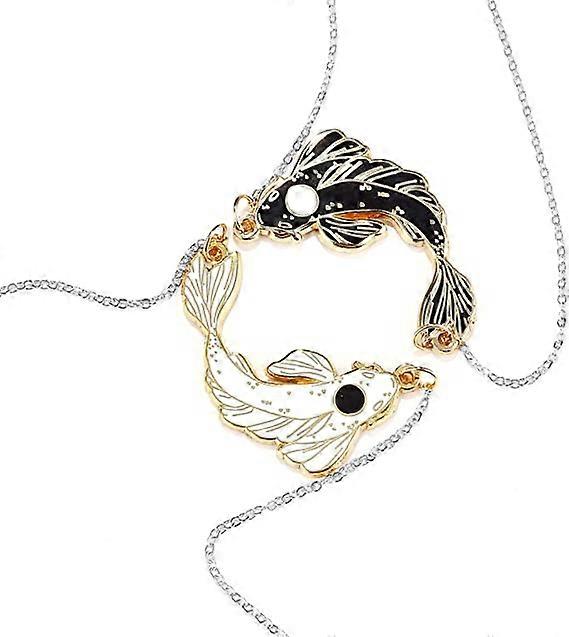Dww-Yin Yang Couple Necklace 2 Lucky Fish Couple Necklaces (black and white), jewelry for him and her, boyfriend and girlfriend