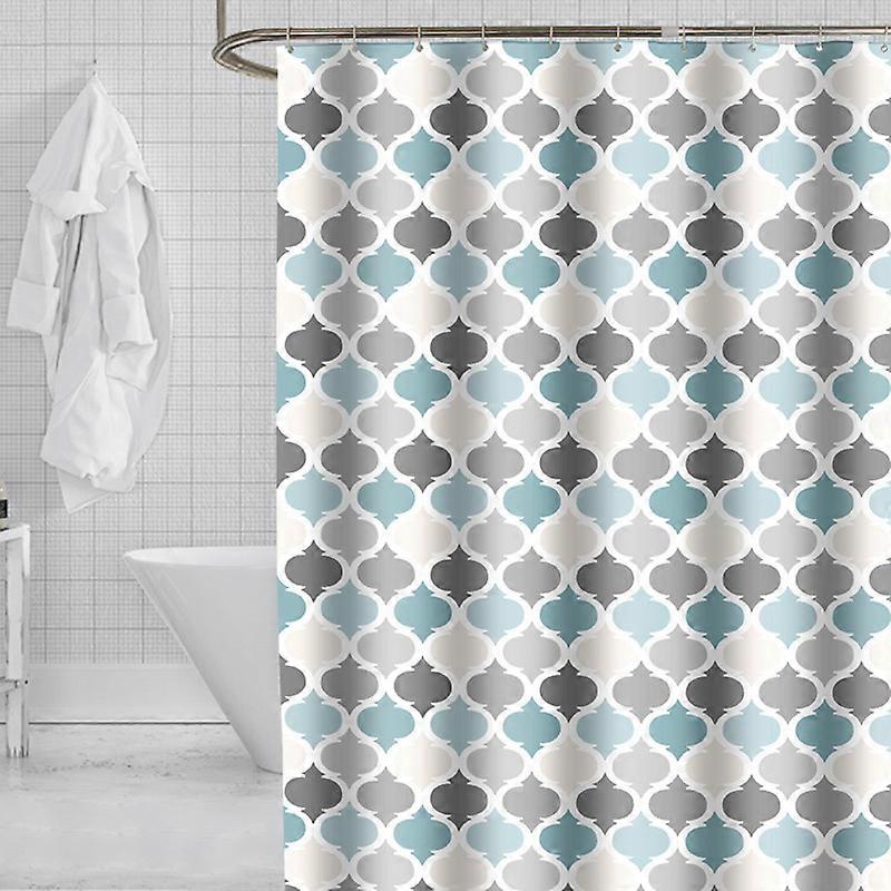 Dww Waterproof and Mildew-Resistant Shower Curtain (180 * 180cm) with Geometric Print Pattern, with 12 Hooks