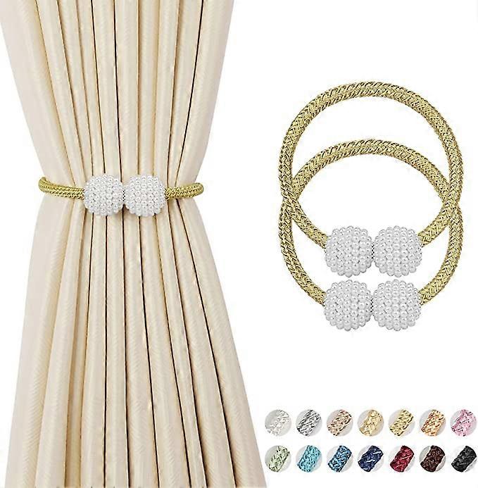 Dww-2 Magnetic Curtain Tiebacks (Gold) - 42cm Long Beaded Magnetic Curtain Tiebacks, European Style Curtain Clips, Cord Loops for Home, Office and Hot