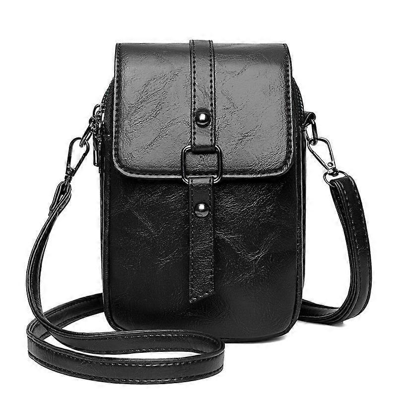 Dww Retro Crossbody Phone Bag for Women (Black), Small Shoulder Bag Crossbody Handbag Wallet, 2 Main Pockets