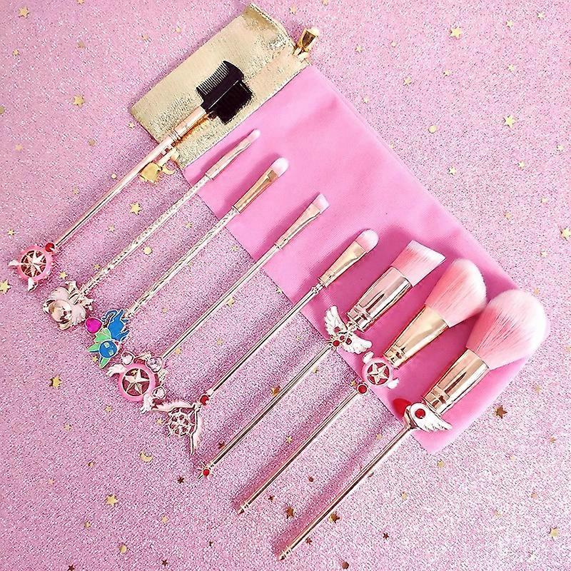 Dww-Cute Magic Stick Makeup Brush Set (8 Gold), Basic Makeup Brush Set with Metal Handles, Novelty Gift for Girlfriends