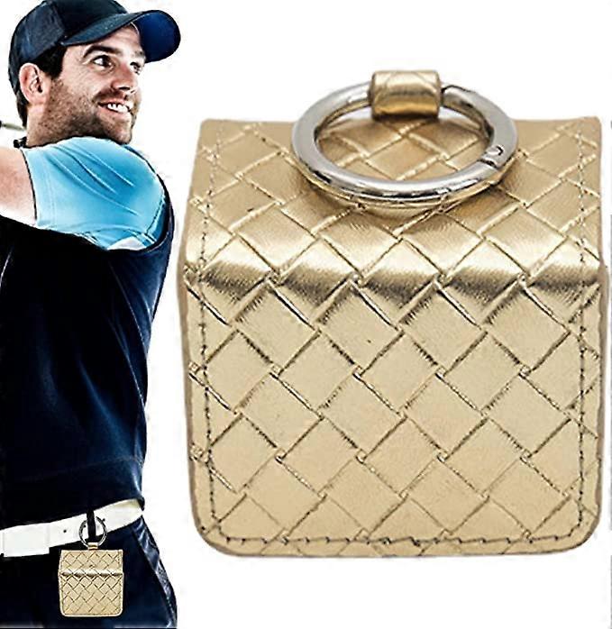 Dww-Golf bag with stand (gold), practical golf case Mini portable woven pattern golf case with hook to hold the ball.