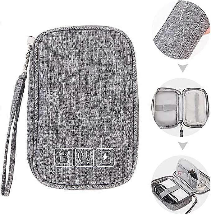 Dww-Small Electronic Accessory Storage Device (Gray), Portable Universal Compact Travel Digital Accessory, Storage Bag for Portable Charger, Cables, E