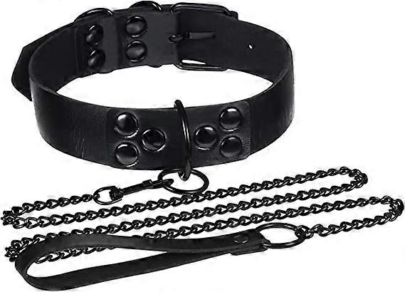 Dww-Choke punk black PU leather + pull cord, sexy gothic leather belt, adjustable black collar, with pull chain