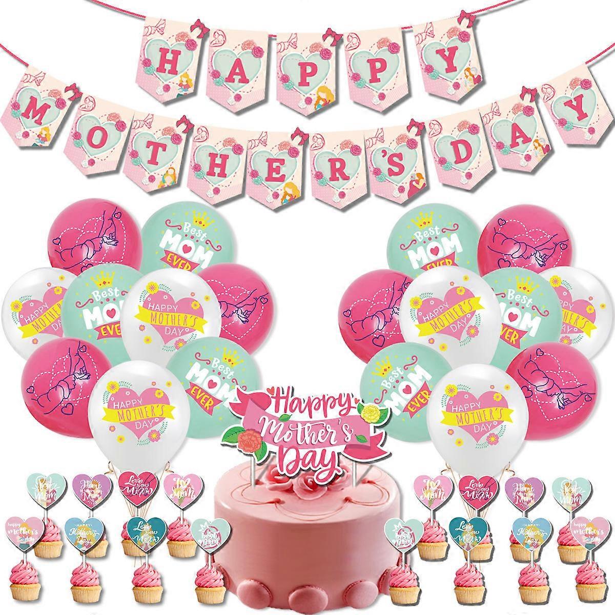 Dww-Decorative Balloon Set for Mother's Day - The Best Mother's Day Balloon Cake Ever - Mother's Day Party Supplies - Happy Mother's Day Banner - Late
