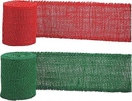 Dww-2 rolls of Christmas burlap silk ribbon, Heisen burlap silk ribbons, red and green burlap silk ribbons, DIY handmade crafts, Christmas tree wreath