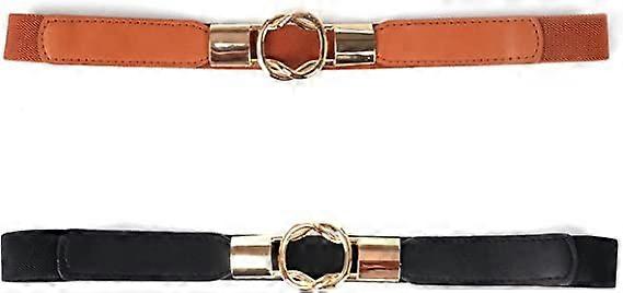 Dww-2 Women's Elastic Belts with Round Buckle (Black and Brown), Women's Adjustable Belts, Used for Dresses, Coats, Shirts and Blouses