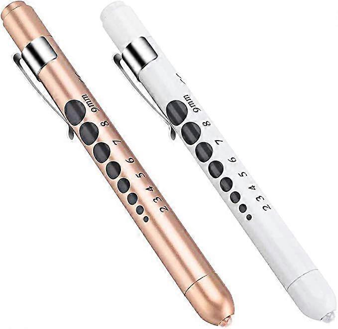 Dww-2-Piece Medical Diagnostic Pen Flashlight (Rose Gold + White), Reusable LED Medical Pen Flashlight with Pupil Gauge, Suitable for Nurses and Docto