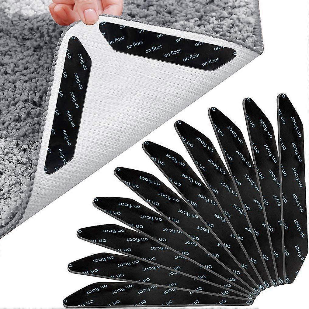 Dww-Pack of 10 Anti-slip Carpet Strips (Trapezoidal 130 x 25 x 2 mm), Reusable Carpet Corner Clips, Strong Carpet Pads for Wood and Hard Floors, Anti-
