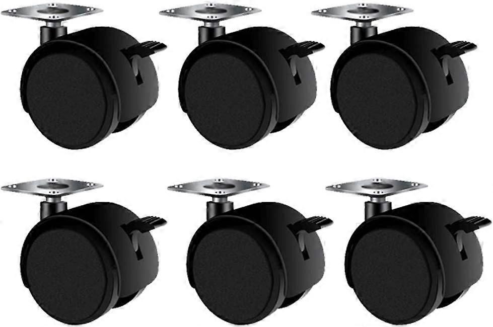 Dww-Double Wheel Furniture Casters (6-Pack), 38mm 360 Swivel Nylon Casters with Brakes, Heavy Duty Non-Marking Universal Swivel Casters with Fixed Pla