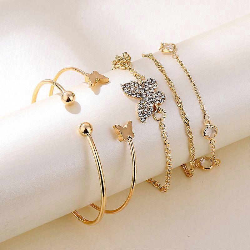 5Pc New Bohemian Elegance Open Bracelets Rhinestone Butterfly Bracelet Girl Gift