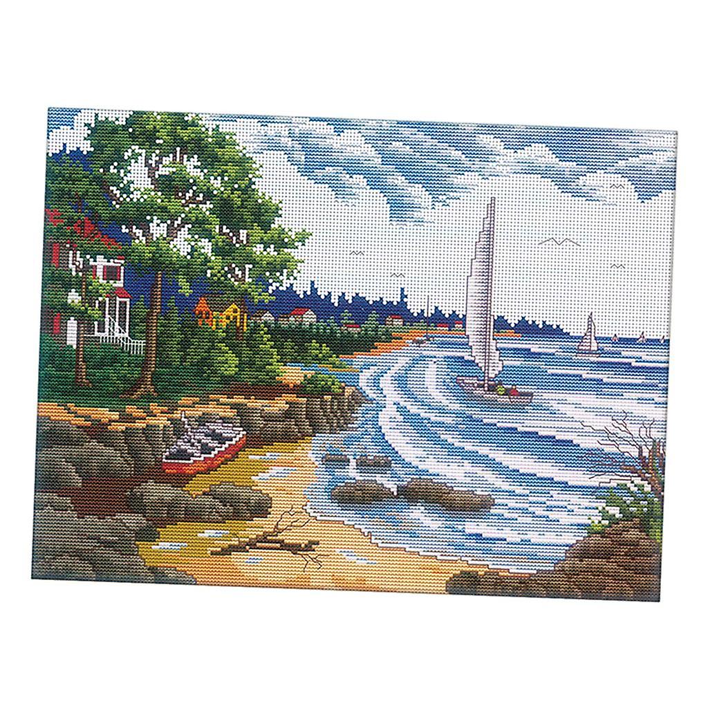 11ct Diy Seaside Landscape Needlework Cross Stitch Kit Home Decor Craft Gift