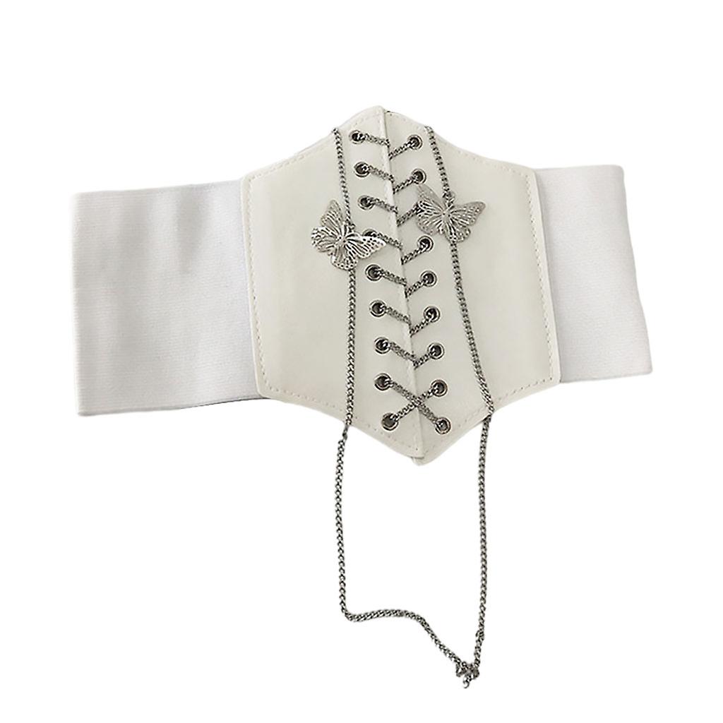 Corset Belt Women Fashion Elastic High Waist Pu Leather Tape Cincher Girdle White