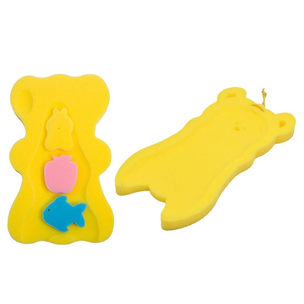 2pcs Bath Sponge Infant Bath Cushion Comfy And Skid Proof Bathing Mat Yellow
