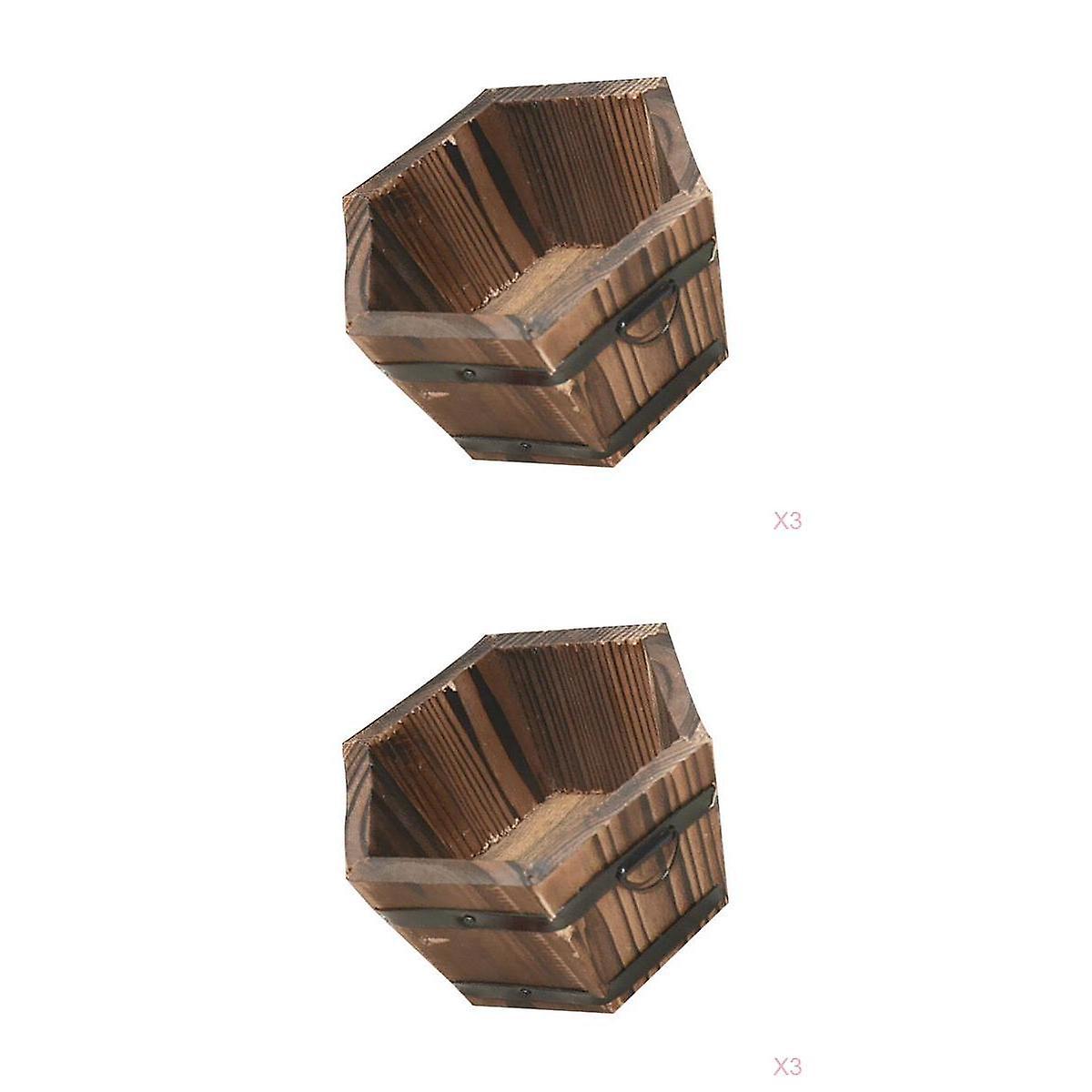6pc Wooden Bucket Pot Flower Planter Barrel Hexagonal Top Patio Garden Decor