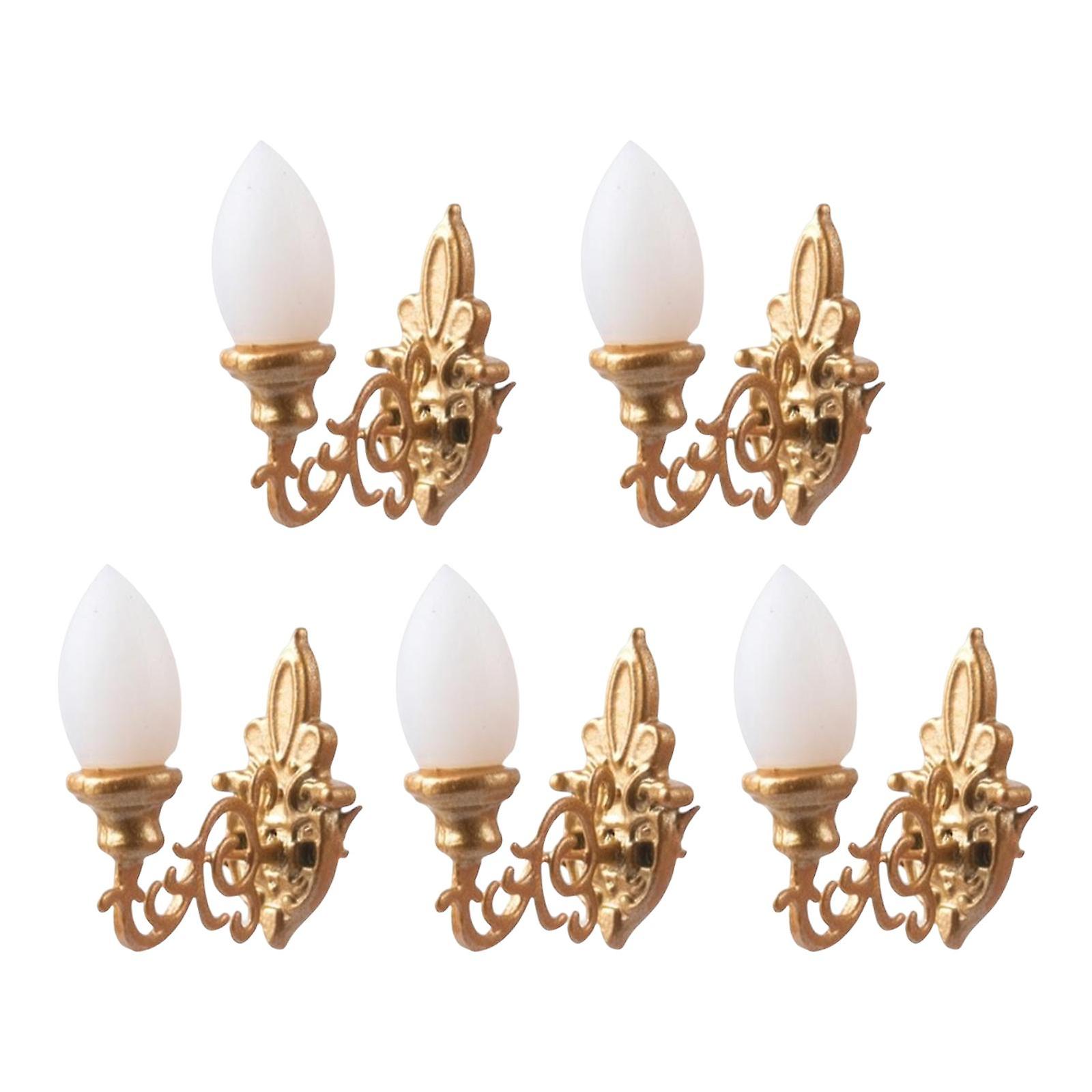 5 X Miniature Model Wall Lamps Toys For Diy Dollhouse Decoration Kids Golden