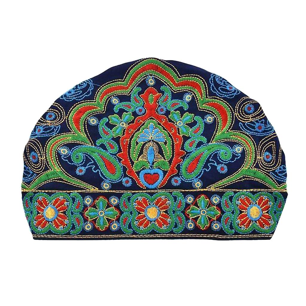 Women Ethnic Turban Hat Cap Head Wrap Scarf Beanie Embroidered Floral Blue