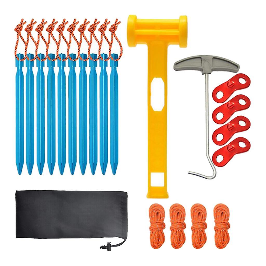 Hiking Camping Aluminum Tent Stake Pegs Hammer Cords Tools Kit Blue