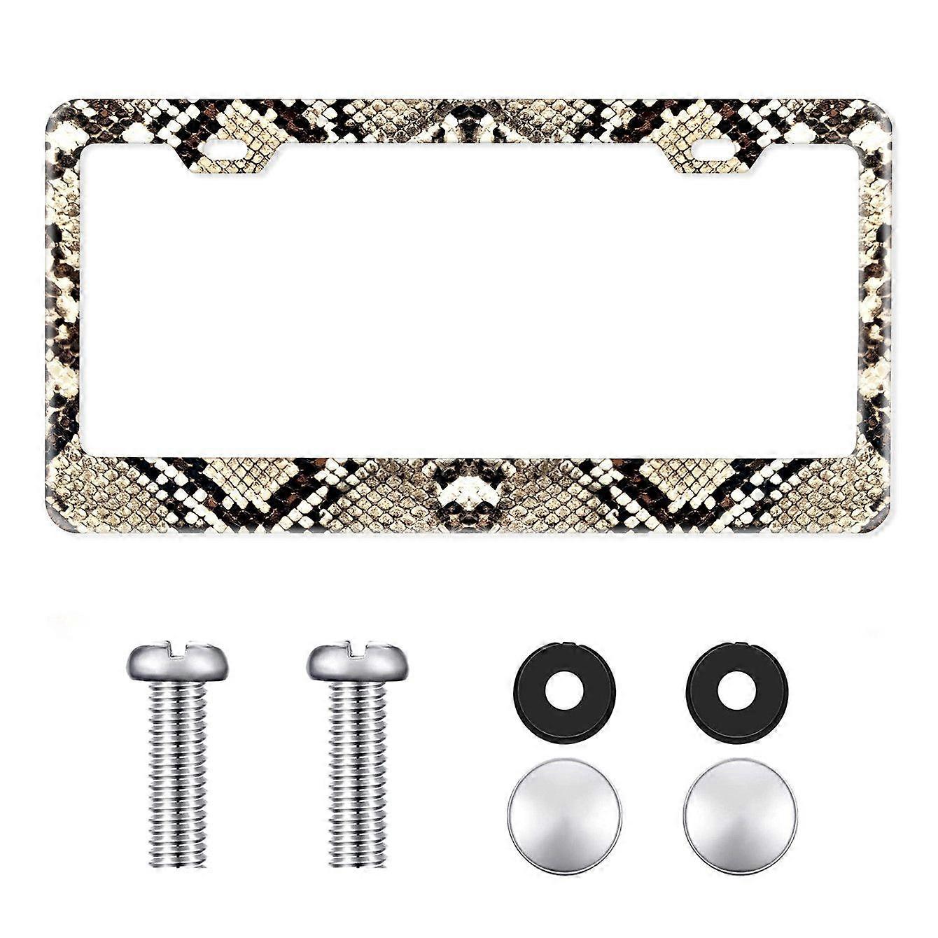 Dww Brown Snake Print License Plate Holder (Size: 31.5*16.2cm) Stainless Steel Rustproof Car Accessories Colorful License Plate Cover Decoration with