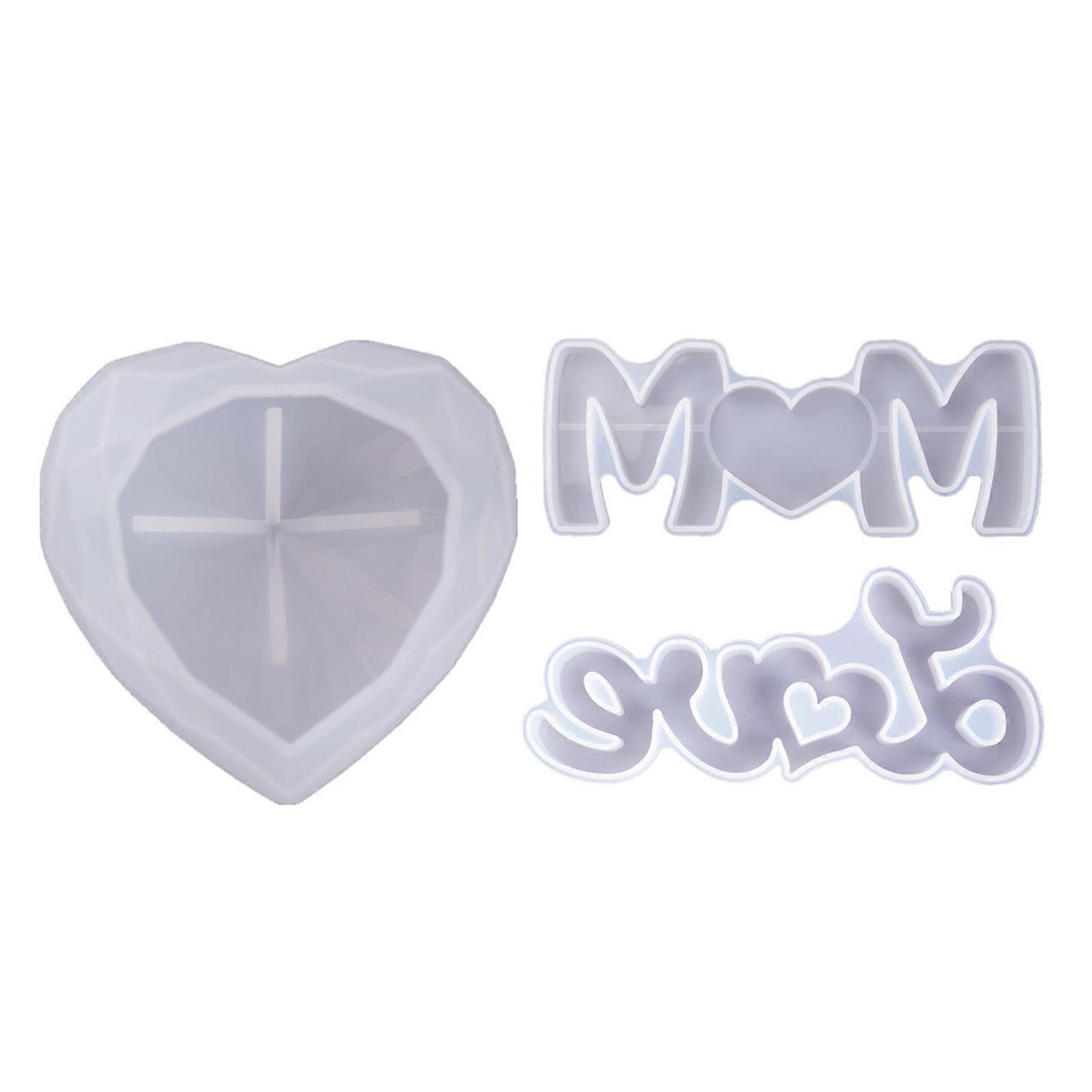 3PCS Mother's Day Silicone Resin Molds Love Mom Letter Heart Mold for Epoxy Resin Casting Diamond Heart Candle Soap Mold