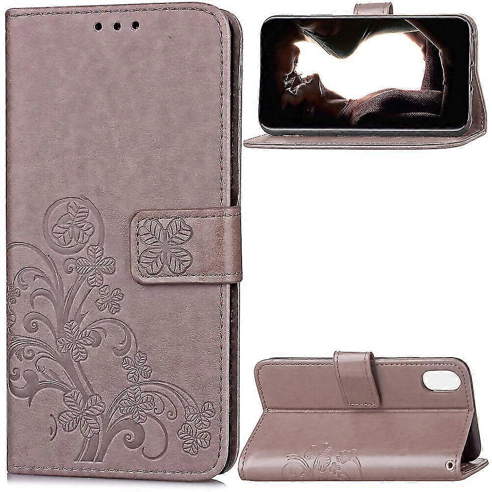 Compatible with Iphone X/xs Cover Wallet Clover Embossed Protective Leather Phone Case - Grey